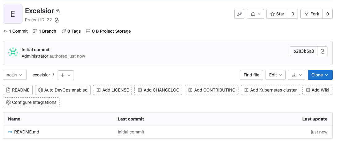 example project named "Excelsior", and creates a minimal approval workflow for the project: