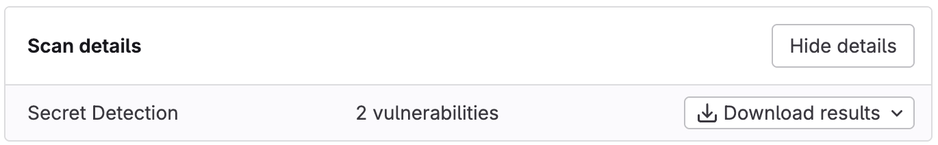 To see the details for each security report type, select Show details ({chevron-down}). For each security report type, the widget displays the first 25 added and 25 fixed findings, sorted by severity. To see all findings on the source branch of the merge request, select View all pipeline findings.